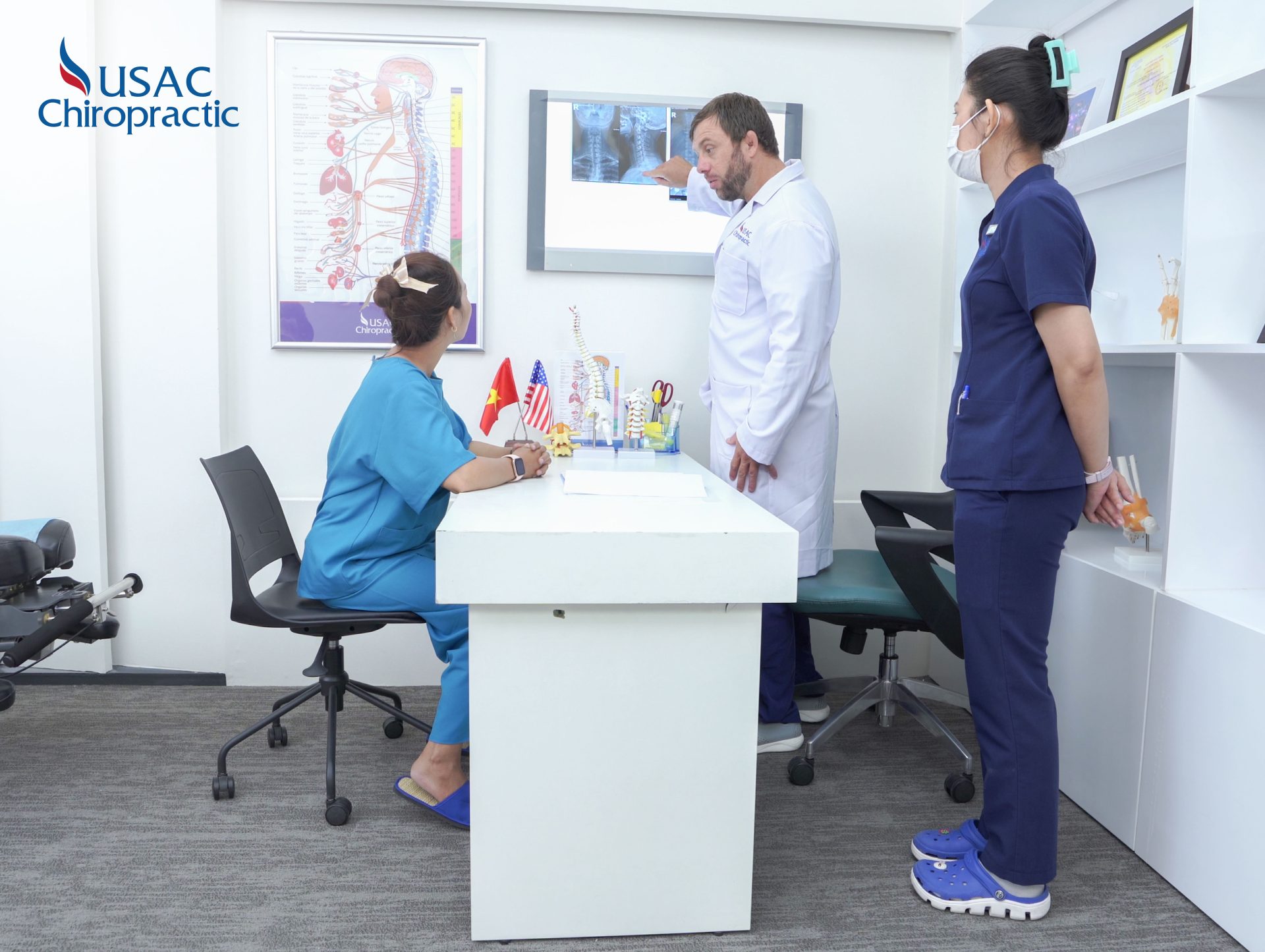 – Giai đoạn 1: Điều chỉnh lại các sai lệch (dù là nhỏ nhất) trên đốt sống với Nắn chỉnh Chiropractic do Hội đồng Bác sĩ Mỹ & châu Âu trực tiếp thực hiện.