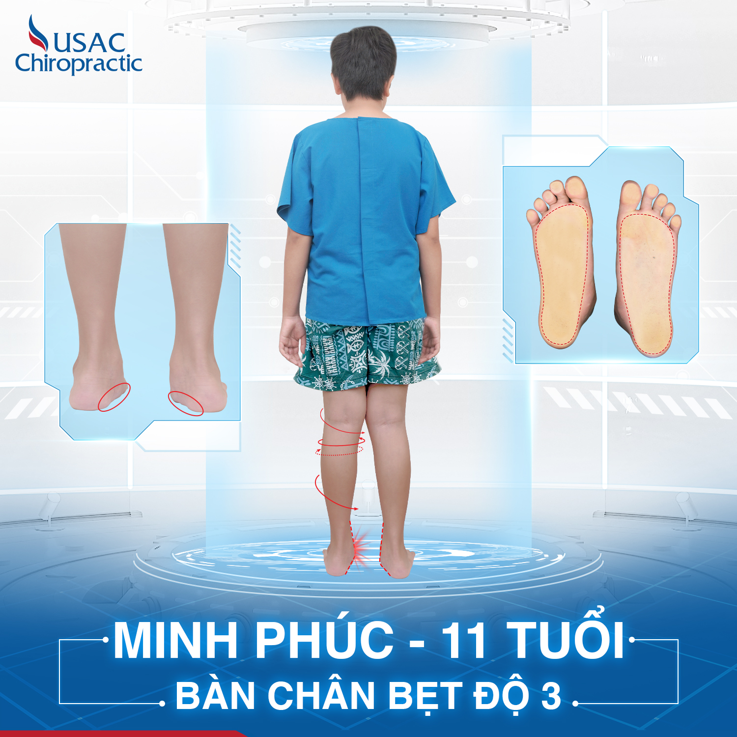 Khác với những phương pháp truyền thống, USAC mang đến giải pháp toàn diện giúp Minh Phúc tìm lại bước đi vững chãi nhờ Phác đồ Flat Feet Care độc quyền: