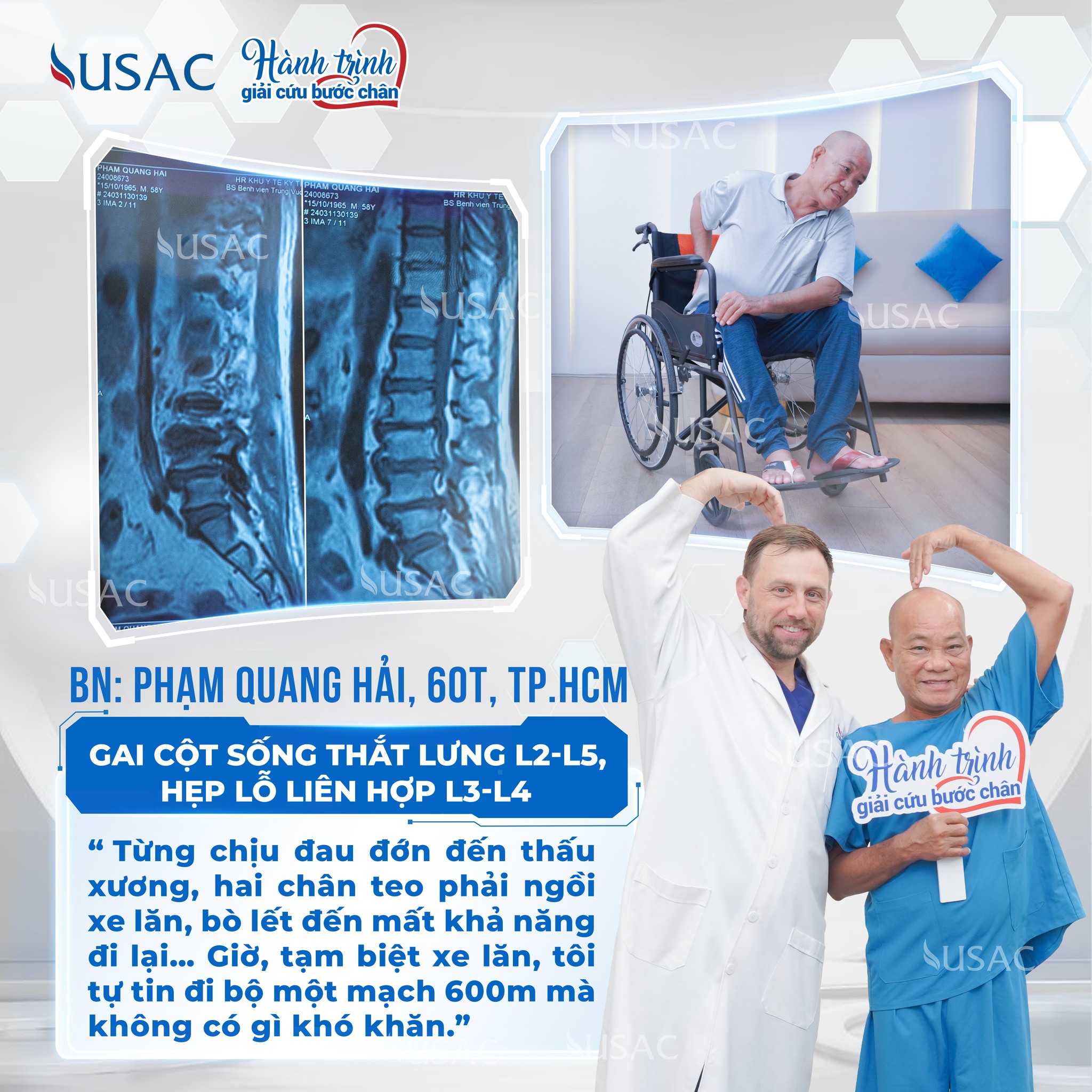Chú Phạm Quang Hải (60 tuổi, Thủ Đức) đã phải sống chung với thoát lồi đĩa đệm và gai cột sống thắt lưng gần 7 năm. Cơn đau không chỉ dừng ở vùng lưng mà còn lan xuống mông và hai chân, khiến việc đi lại ngày càng khó khăn.