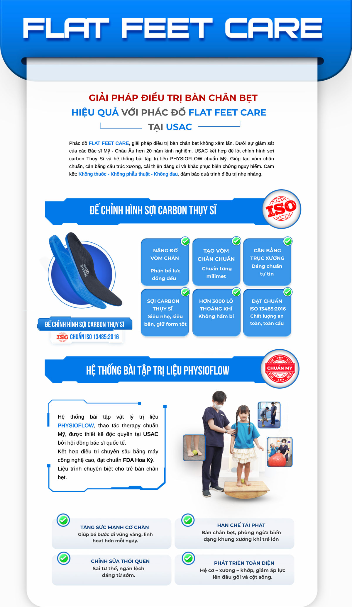 Sau khi hiểu rõ Bàn chân bẹt có ảnh hưởng gì không, điều quan trọng tiếp theo là tìm ra hướng can thiệp phù hợp, không chỉ hỗ trợ tạm thời mà còn tác động vào cơ chế vận động của bàn chân. Tại USAC, phác đồ FLAT FEET CARE được xây dựng với mục tiêu đó, kết hợp giữa hỗ trợ cơ học và trị liệu chức năng.