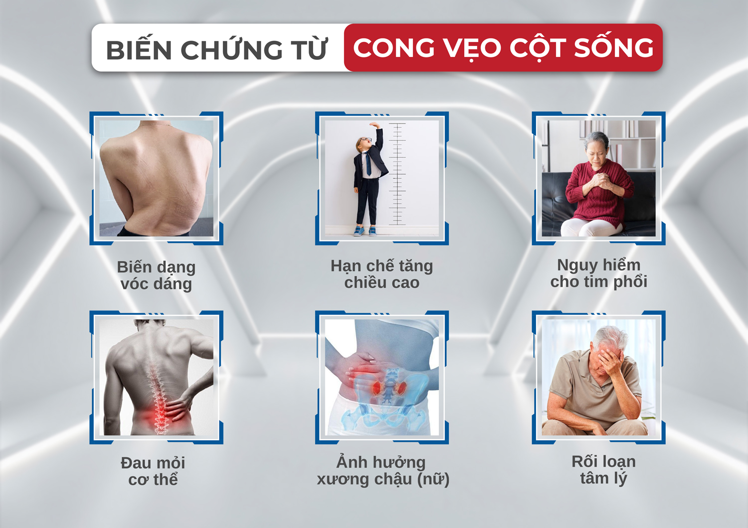 Cong vẹo cột sống là căn bệnh khá phổ biến hiện nay, nếu không phát hiện và điều trị sớm thì sẽ gây ra các biến chứng ảnh hưởng nghiêm trọng đến các cơ quan nội tạng của hệ hô hấp, hệ tiêu hóa, làm giảm các chức năng của tim, phổi… và đặc biệt là ngoại hình.
